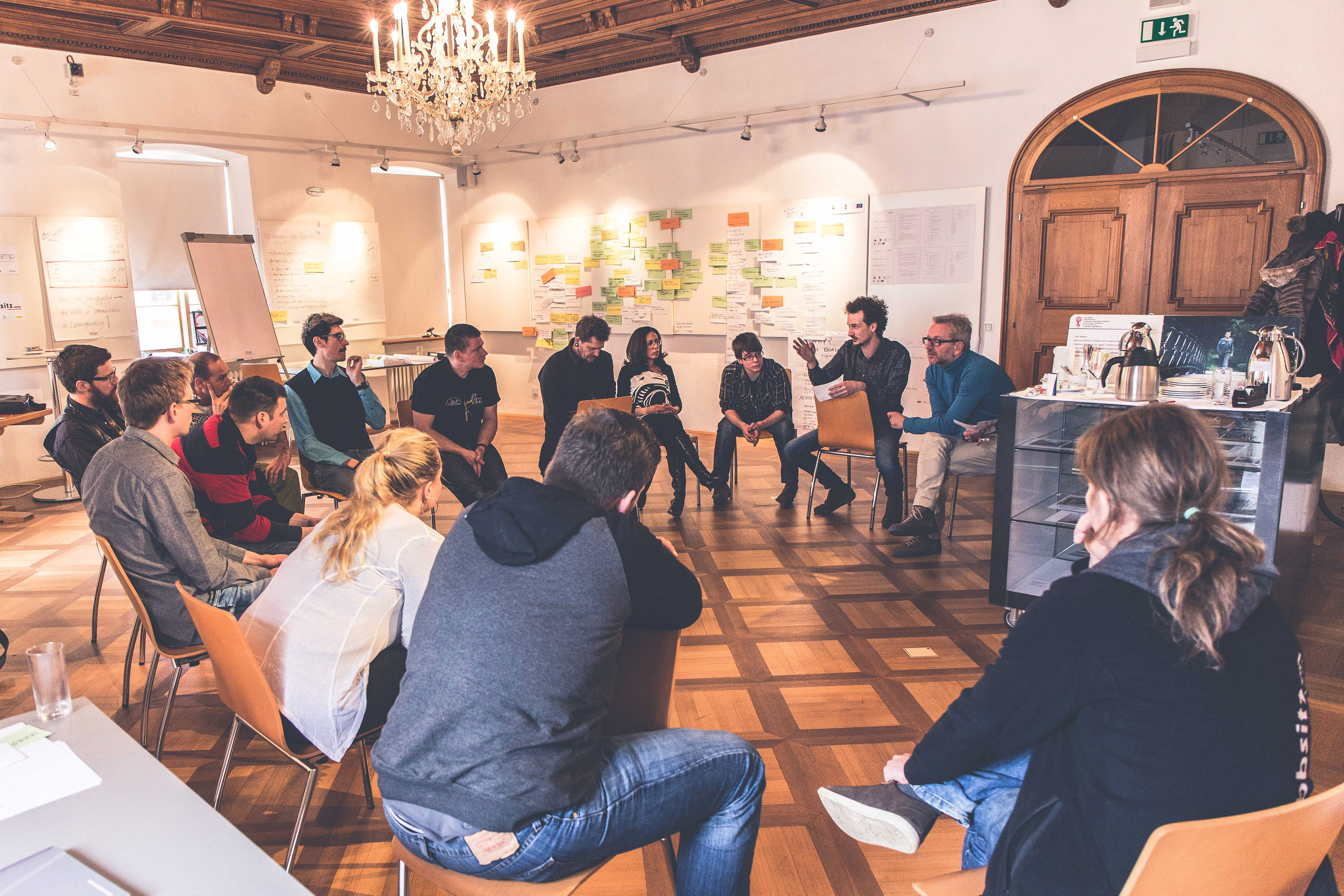 A group of thinkers in the Haus FeRRUM in Schmiedezentrum Ybbsitz (v.l.t.r.):